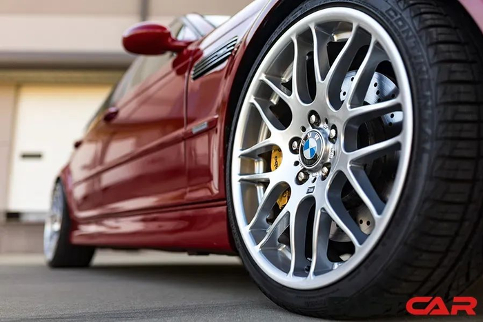 肖恩希望找到最好看的E46官方轮毂,于是结果就是这套19英寸的Style 163M轮毂,Style 163非常适合E46轿车的外形,它们完美地填充了车轮拱,尤其是搭配全新的低姿态避震悬架。