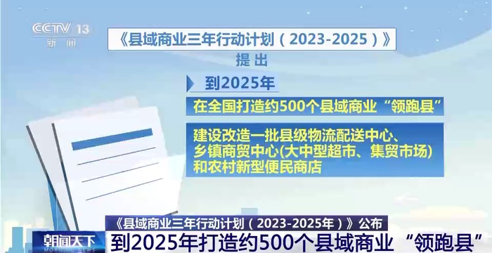 商务部等9部门昨天联合公布《县域商业三年行动计划(2023-2025年)》,进一步提升县域商业体系建设成效。《计划》提出到2025年,在全国打造500个左右的县域商业“领跑县”,建设改造一批县级物流配送中心、乡镇商贸中心和农村新型便民商店。90%的县达到“基本型”及以上商业功能,具备条件的地区基本实现村村通快递。工业品下乡、农产品进城双向流通渠道进一步畅通,农民增收和消费提质实现良性循环,更好满足乡村产业振兴和农村居民生产生活需求。