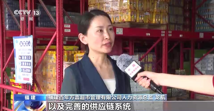 福建百年万嘉超市管理有限公司人力资源总监 龙航:我们有统一的采购渠道以及完善的供应链系统,能够最大程度地保障我们的门店供应,满足消费者的日常需求。