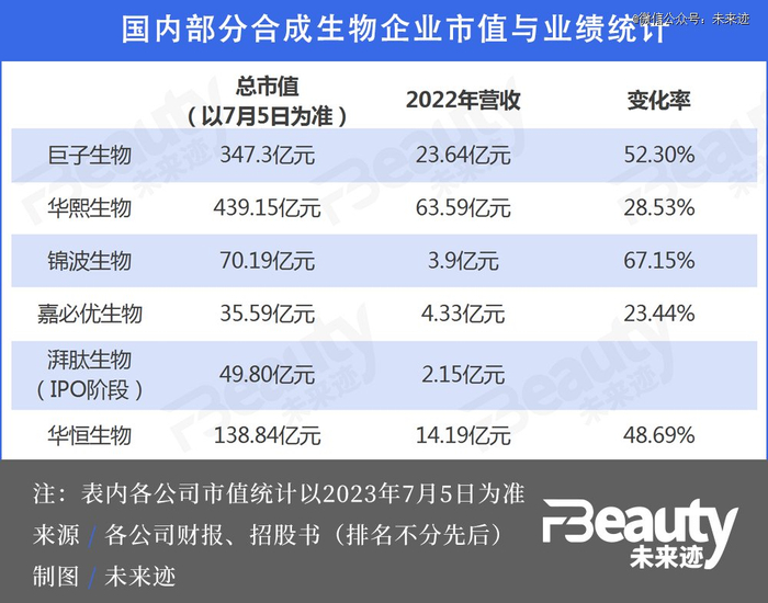 这类企业多以中小型研发型企业为主,主要做B端原料生意。而Amyris是少有的既做B端又做C端的企业,其市值规模也处于海外前列。