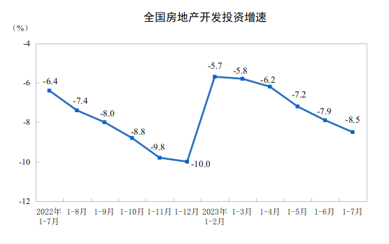 国家统计局:1-7月全国房地产开发投资同比下降8.5%