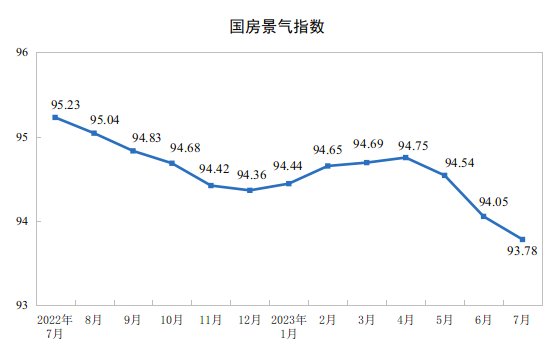 7月份,房地产开发景气指数(简称“国房景气指数”)为93.78。