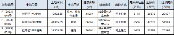 8月15日,武汉市据拍卖出让国有建设用地使用权公告 武告字(2023年)10号,举行土拍。本次土拍以网上拍卖方式出让经开区3宗地,3宗地总面积78621.52平方米,总起始价9.5541亿元。3宗地块全部底价成交,均被国企摘得。