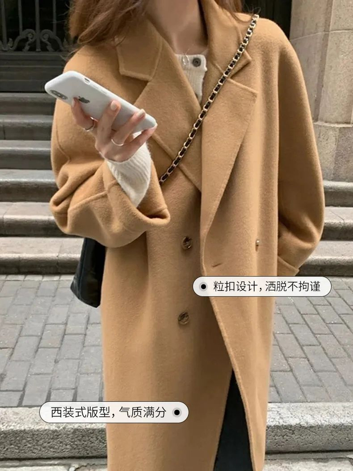 茧墨 中长款双面呢羊毛大衣