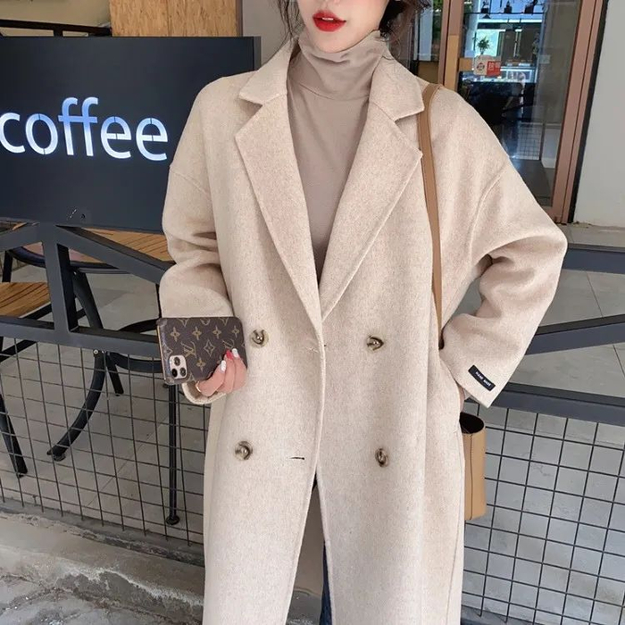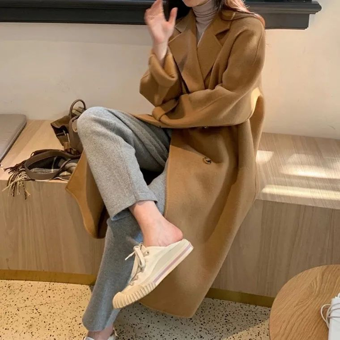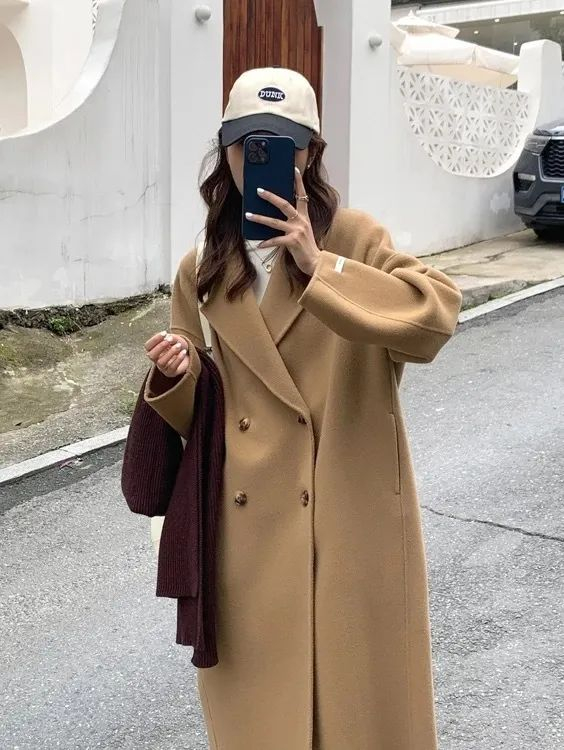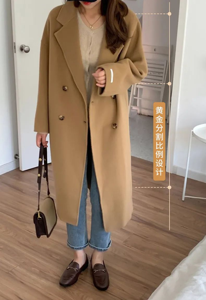 茧墨的这款双面呢羊毛大衣真的是经典又耐看,单穿一件就非常暖和。