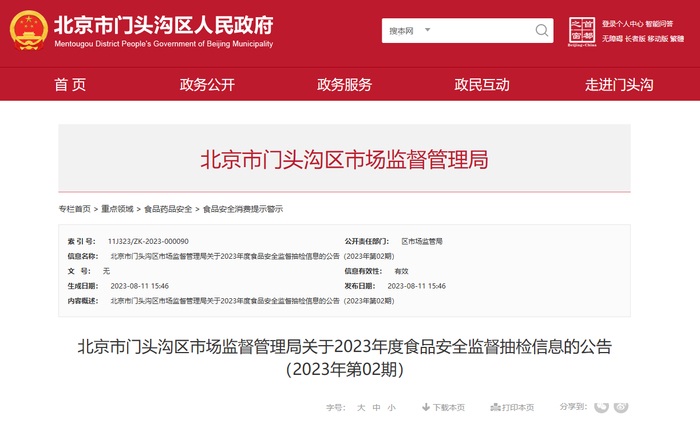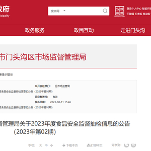 北京市门头沟区市场监督管理局公布食品安全监督抽检信息(2023年第02期)