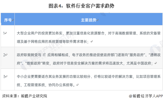 未来,企业用户在软件方面的需求将从产品购买模式向整体解决方案购买模式过度。在具体需求方面,将突出表现在以下几点: