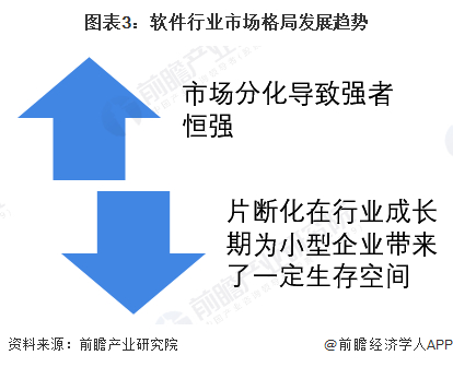 市场片断化的同时,大型软件公司的市场地位将进一步得到巩固,稳固化是大型软件公司的发展趋势。随着行业逐渐进入稳定发展阶段,小型公司将发现自己的生存空间越来越小,甚至出现财政危机,而大型公司的盈利则越来越丰厚和稳固。在这种环境下,大公司将收购那些面临市场压力的小公司,获取其创新软件和服务客户,从而进一步巩固自己的市场地位。