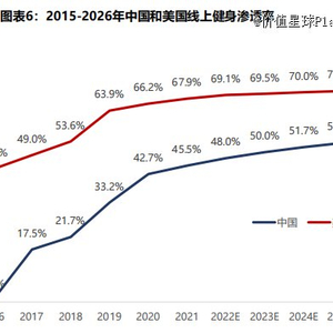 从增速来看,线下健身会员增速远低于线上健身月活跃用户增速。根据灼识数据,线上健身会员及健身内容的年平均月活跃用户数,从2016年的约140万增加到2021年的1.38亿,预计到2026年将达到2.38亿,2021年-2026年的复合年增长率为11.6%;而线下健身房会员总数,预计将从2021年的4100万增加到2026年的4700万,复合年长率仅为2.6%,远低于线上健身会员的增速。