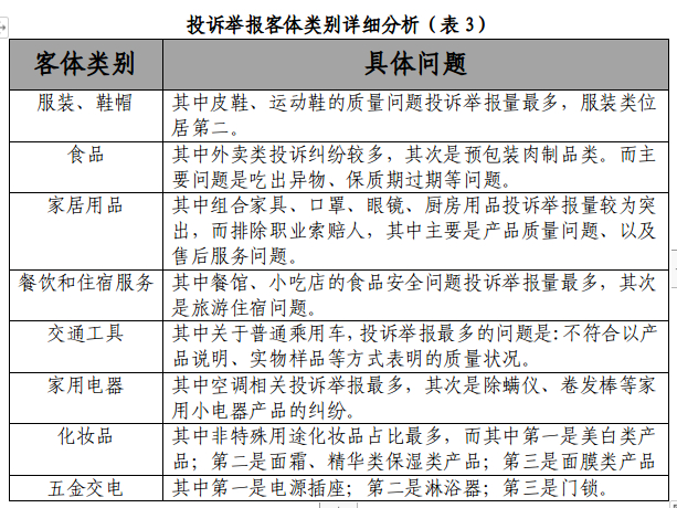 (一)消费投诉客体类别分析