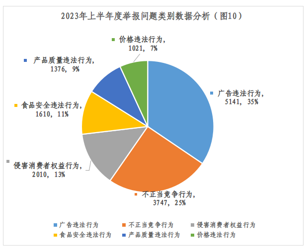 广告违法行为5141件;不正当竞争行为3747件;侵害消费者权益行为2010件;食品安全违法行为1610件;产品质量违法行为1376件;价格违法行为1021件 。