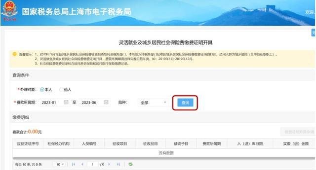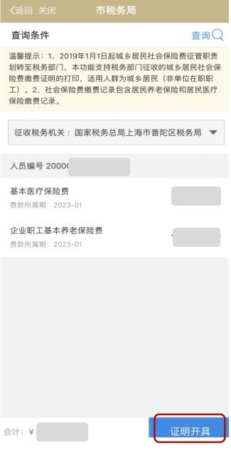 点击【查询】,开具本人证明或代开他人缴费证明