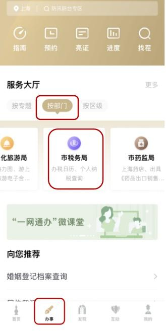 登录随申办市民云APP,进入办事界面中的市税务局