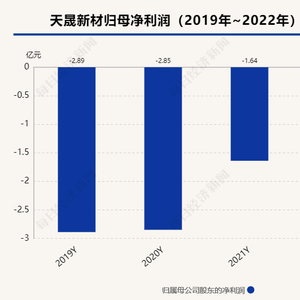 天晟新材引入战略投资人后,2020-2022年,归母净利润分别亏损-2.85亿元、-1.64亿元、-1.88亿元,录得营收分别为8.94亿元、7.61亿元、5.85亿元,同比下降0%、14.83%、23.17%。