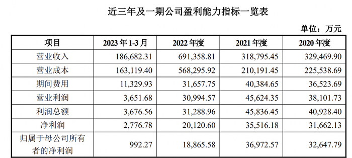 最近三年及一期,发行人分别实现营业总收入329,469.90万元、318,795.45万元、691,358.81万元和186,682.31万元,净利润31,662.13万元、35,516.18万元、20,120.60万元以及2,776.78万元,毛利率31.54%、34.07%、17.80%和12.62%。