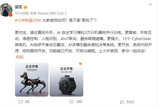 小米为了提升CyberDog 2的平台竞争力,也在发布会上宣布将对CyberDog 2超过100+的API进行开源。12999元的售价,也让这款产品这一次真正意义上从实验室走到了前台。