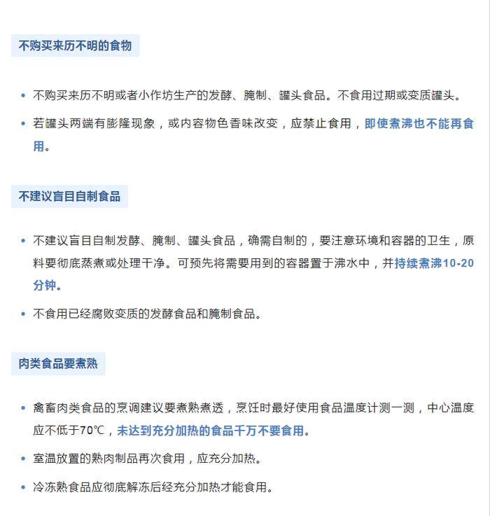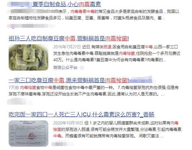 1、既往调查发现,家庭自制发酵食品和腌制食品,往往是引起中毒的“元凶”:如腌肉、腊肉、泡菜、豆豉、豆瓣酱、腐乳、臭豆腐。