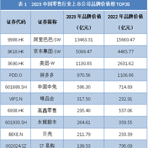 根据2023年中国零售行业上市公司品牌价值的高低排序,可以得到“2023中国零售行业上市公司品牌价值榜TOP20”(以下简称TOP20)。