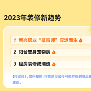 据行业专家预计,2023年家装会迎来一个小高潮。报告还指出了当前装修行业的三大新趋势,多维度展现装修用户的消费需求变化,从新兴职业“排雷师”的出现,到为爱宠改造专属空间,最后是品质居住意识觉醒带来的租房装修潮流。