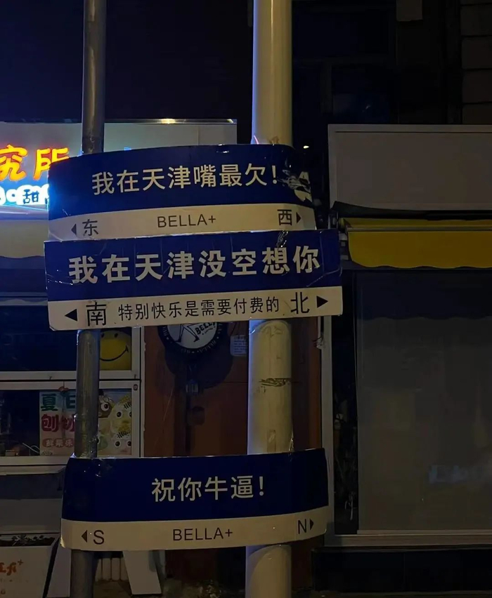 不知道从什么时候起,你身边熟悉的“网红店”、景区都竖着一块相同句式、相似边框,蓝底白字的路牌。新奇又浪漫的风格,让它一出世就吸引众人目光。