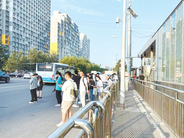 “等公交的人全都站在马路上,把骑行道全堵上了,公交站的等候区形同虚设。”近日市民王女士向本报反映,地铁草房站公交车站人流量大,每到下班高峰期,大批乘客站在马路上等车,不仅影响交通,更有安全隐患。