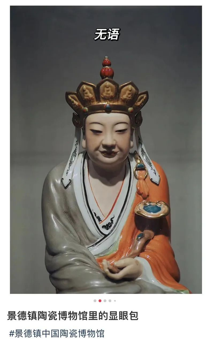 而近期因似笑非笑表情风靡网络的景德镇陶瓷博物馆佛教塑像,不仅被人称为“无语罗汉”,还吸引大批网友前去打卡,摆出同款表情合照,甚至推出“仿妆”。一些人还将其他罗汉塑像也配上文字,发出来斗图。