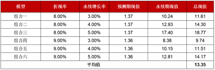 我们以预测的2023年至2025年EPS分别为0.42、0.49、0.58为基础,根据以下假设,进行绝对估值测算,对应每股合理的内在价值为13.35元/股。