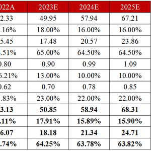 我们预计2023-2025年公司营业收入分别为50.85、58.94、68.31亿元,同比增长17.91%、15.89%、15.90%,归属于母公司股东净利润分别为6.14、7.11、8.46亿元,对应EPS分别为每股0.42、0.49、0.58元。
