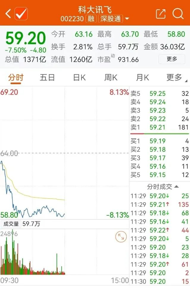 AI概念股则遭到资金抛售。在披露董事长减持消息后,千亿市值AI龙头科大讯飞股价大幅回撤,早盘最大跌幅超过8%。算力、传媒等AI相关板块也明显回调。