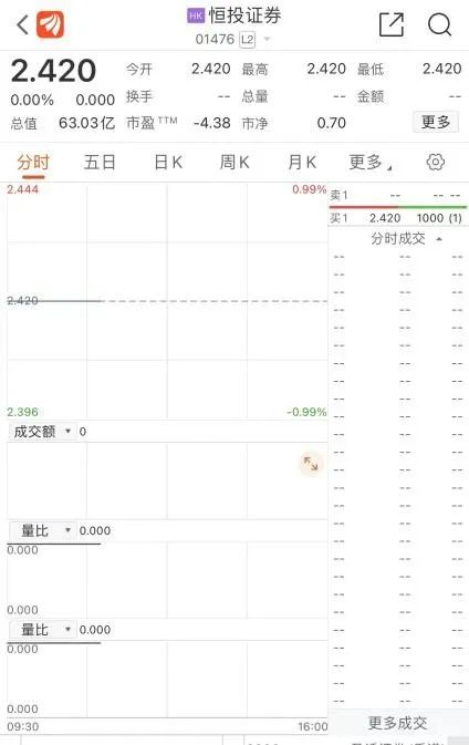 今日早盘,恒投证券又为零成交。昨日收盘,港股恒投证券涨18.05%,但成交额仅18.98万港元。恒投证券目前总市值为63.03亿港元。