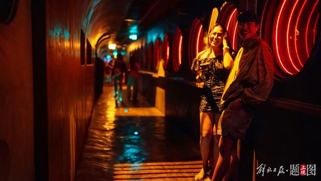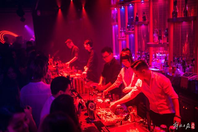 四米吧台后,5个调酒师一字排开,忙碌而不慌乱,流水线般快速地开瓶、倒酒、加冰、搅拌、摇壶……桑德斯和同伴挤不进舞池,索性在靠门口的位置,随着节奏舞动。
