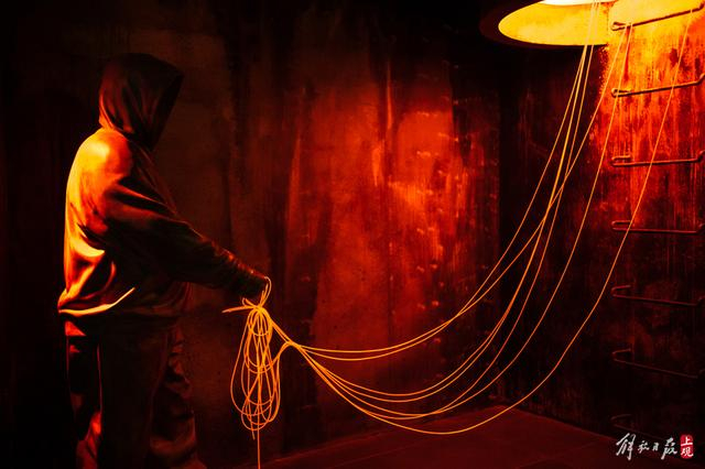 二楼的“Hush”是跟北京最火的Hip Hop酒吧ph合作的上海首店。空间设计成潜水艇,走廊里的两个等比例连帽衫无脸人偶为环境营造神秘感。一排圆形的舷窗正对着公园,远处是城市高楼的点点灯光。