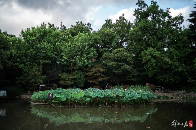 夏日的复兴公园,参天古树浓荫蔽日,大草坪绿意葱茏,小池塘荷花绽放,沉床花坛草木挺拔。