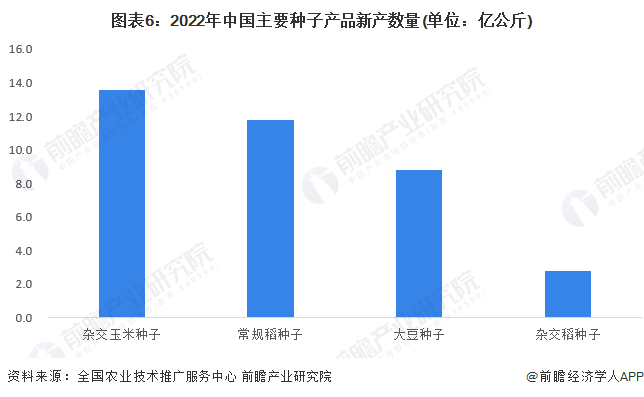 1、主要种子产品新产数量:2022年约为37亿公斤