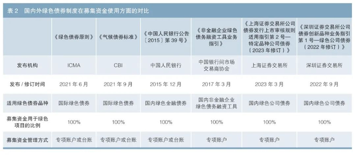 GBP和CBS均要求绿色债券募集资金100%用于绿色项目。国内绿色债券分为由中国人民银行管理的绿色金融债、中国银行间市场交易商协会管理的非金融企业绿色债务融资工具、证监会和交易所管理的绿色公司债、国家发展改革委管理的绿色企业债。此前,国家发展改革委和沪深交易所对绿色债券募集资金用途的比例要求是不低于50以及70%用于绿色项目。2022年7月,《中国绿色债券原则》发布,统一了国内绿色债券标准,明确了募集资金需要100%用于绿色项目。