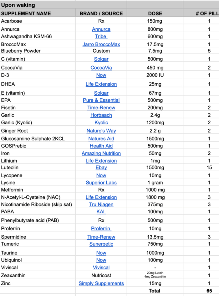今年1月,约翰逊首次与彭博社分享了他的抗衰老方案。他每天坚持严格的锻炼和饮食习惯。按照计划,他每天上午11点就要吃晚餐,每天摄入的热量控制在1977卡路里,同时还要服用111种补品。