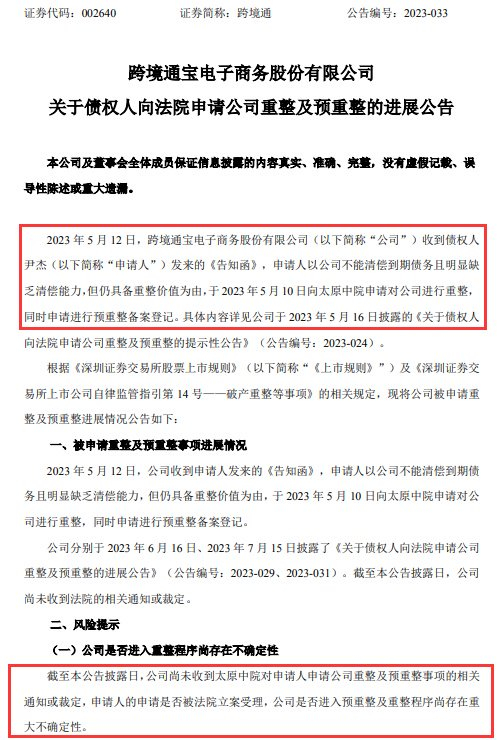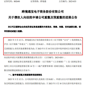 跨境通公布债权人向法院申请公司重整及预重整进展