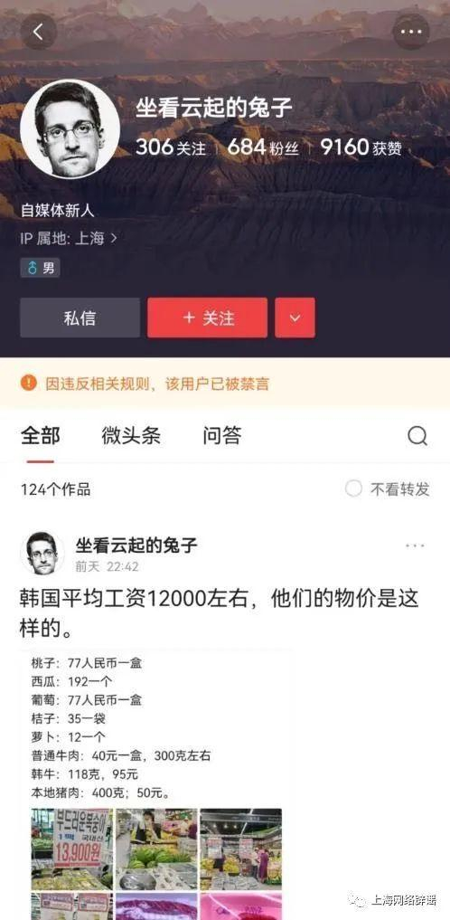 据介绍,上海市网信办对散布该谣言的首发账号“坐看云起的兔子”进行无限期禁言;对“小唐35865B1k”“分秒必争豆花S2”“自由老兔”“用中华利剑”等账号实施禁言30-60天的处罚;加挂禁言标签,以正视听。