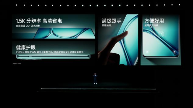 这块屏幕拥有 120Hz 可变刷新率,1.5K 超视网膜分辨率,1600 尼特的超高亮度,为用户带来清晰、通透、省电的绝佳体验。得益于一加与京东方的联合优化,全新京东方 Q9+ 发光材质在用户较为关心的暗光下显示效果、亮度均匀性有显著提升。夜晚、暗光下显示更自然、更真实;在色偏、拖影等问题上也有了很大的改善,屏幕显示更准确、效果更出色。