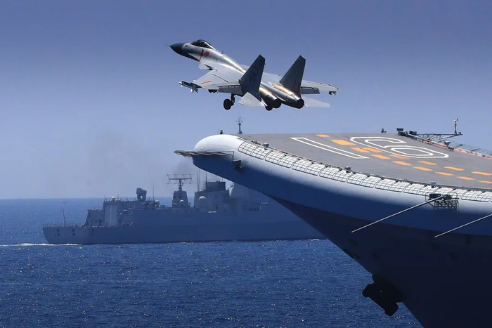 2017年1月2日,歼15第一次伴随辽宁舰抵达南海海域,实现在黄海、渤海、东海、南海四大海域起降演练。