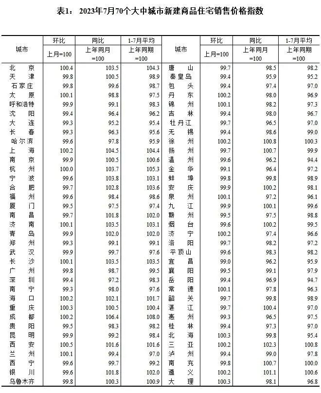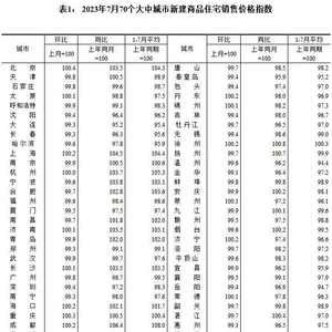 8月16日,国家统计局发布2023年7月份70个大中城市商品住宅销售价格变动情况。7月市场整体还处于下行阶段,由于政策具体细则并未在一二线城市全面落地,政策的实际效力依然有待8月显现。