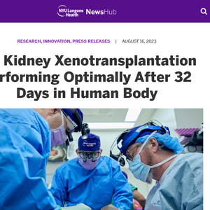 朗格尼移植研究所主管罗伯特·蒙哥马利博士对媒体表示:“这个(猪的)器官真的能像人类器官一样运作吗?到现在为止看上去像那么回事。”
