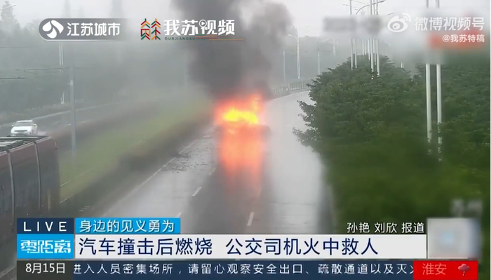 2、路遇车辆起火公交司机果断出手 近日,江苏苏州的公交司机李如祥开车时,发现一辆车碰撞起火,车主昏迷被困。李如祥立即靠边停车上前救人,帮助车主脱离危险区域。受伤车主被救出后送医救治,目前身体已无大碍。事后,当地派出所为李如祥颁发了见义勇为奖。(@我苏特稿)