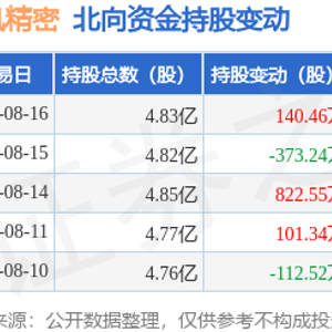 立讯精密(002475):8月16日北向资金增持140.46万股