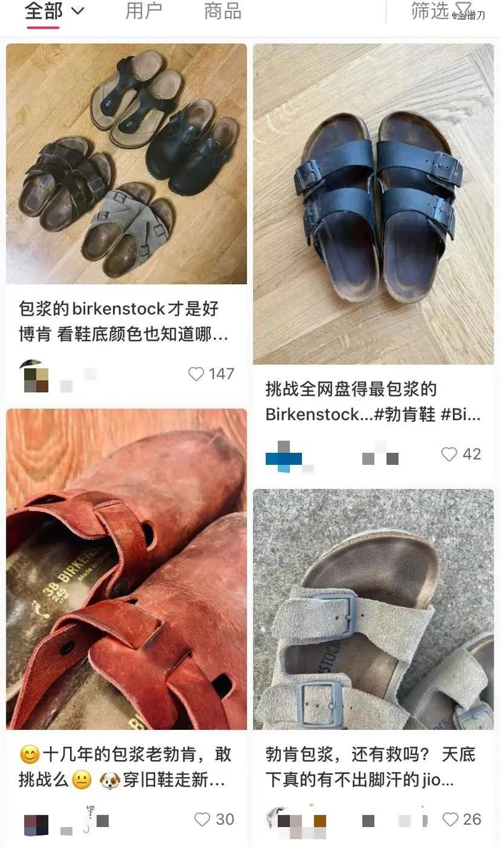 大把年轻人纷纷在小红书上晒自己的“包浆勃肯鞋”来展示自己勃肯鞋资深用户的身份。