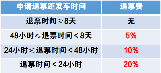 学生票退票手续费与全价票退票手续费规则相同,因旅客自身原因不能按约定乘车的,按下述原则退票: