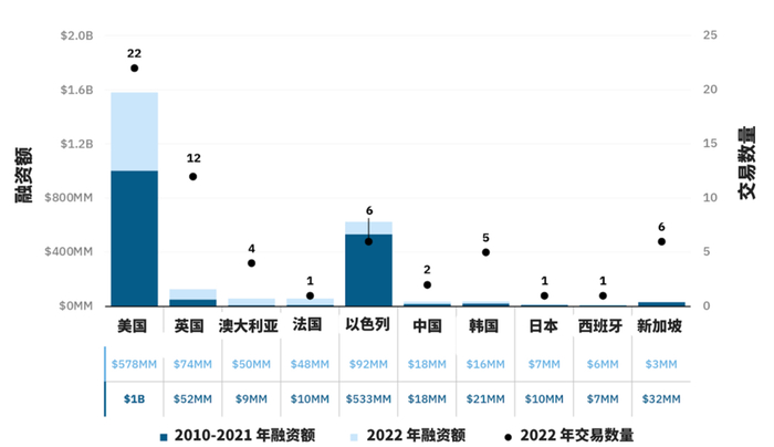 谷孚咨询统计的,细胞培养肉及海鲜投资前10的国家(2016-2022 年)