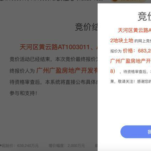 8月15日,广州天河区黄云路AT1003011、AT1003072地块在历经23轮竞价后,由越秀地产以总价68.32亿元竞得,地块计算容积率建筑面积为136211.24㎡,成交楼面地价50160元/㎡。