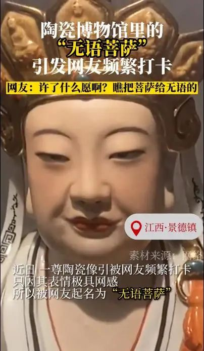 沉思罗汉面相丰腴、眉目慈善,于冥想中静悟人所不知,而此般沉思面孔也吸引了诸多游客前往景德镇中国陶瓷博物馆打卡,更有网友惊呼“竟然是在博物馆真实存在的”、“这原来不是P的啊哈哈哈哈!”。