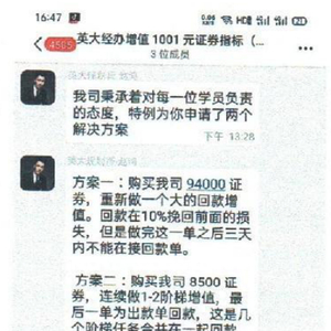 进群后,群管理员称申请退学费需通过“英大经办”APP进行办理,并在群聊中发布下载链接,小吴下载注册账户后,便收到APP客服“清退办理专员”的私信。